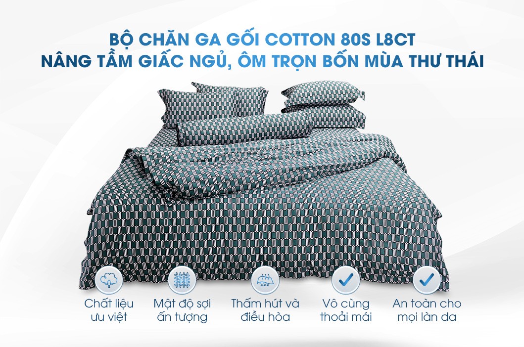chăn ga gối Cotton 80S L8CT không chỉ mang đến sự sang trọng cho không gian